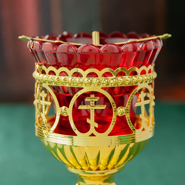 CASTIÇAL LAMPARINA DE MESA CRUZ ORTODOXA